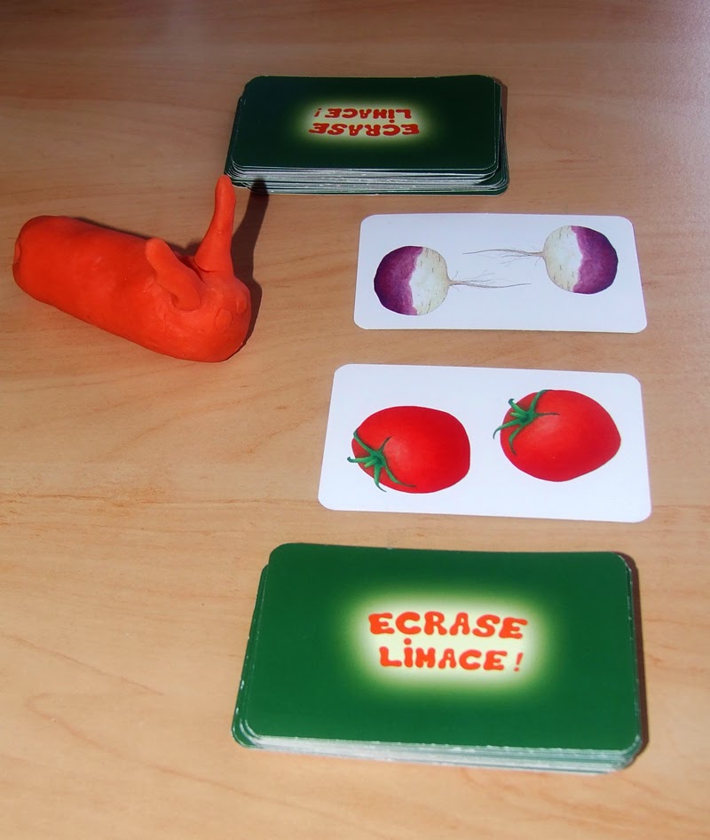 Les cartes limaces : lorsque l'une d'entre elles est retournée, le joueur suivant doit déposer autant de cartes qu'indiqués ! En espérant ne retourner que des légumes et des fruits...